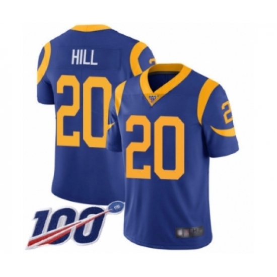 >Men's Los Angeles Rams #20 Troy Hill Royal Blue Alternate Vapor Untouchable Limited Player 100th Season Football Jersey
