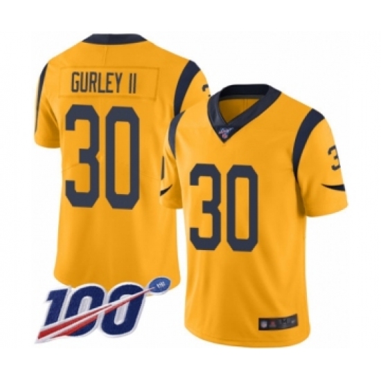 Men's Los Angeles Rams #30 Todd Gurley Limited Gold Rush Vapor Untouchable 100th Season Football Jersey