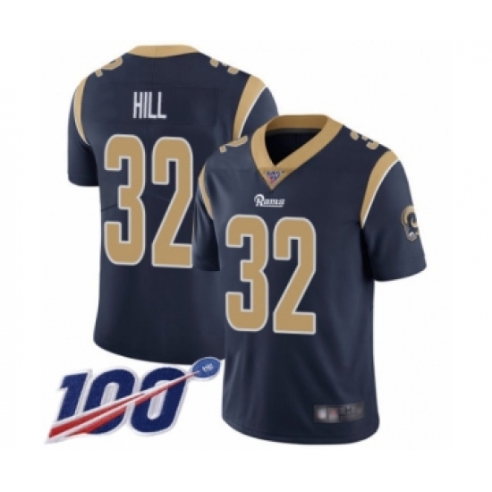 >Men's Los Angeles Rams #32 Troy Hill Navy Blue Team Color Vapor Untouchable Limited Player 100th Season Football Jersey