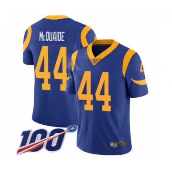 Men's Los Angeles Rams #44 Jacob McQuaide Royal Blue Alternate Vapor Untouchable Limited Player 100th Season Football Jersey