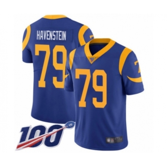 Men's Los Angeles Rams #79 Rob Havenstein Royal Blue Alternate Vapor Untouchable Limited Player 100th Season Football Jersey