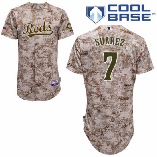 >Men's Majestic Cincinnati Reds #7 Eugenio Suarez Replica Camo Alternate Cool Base MLB Jersey