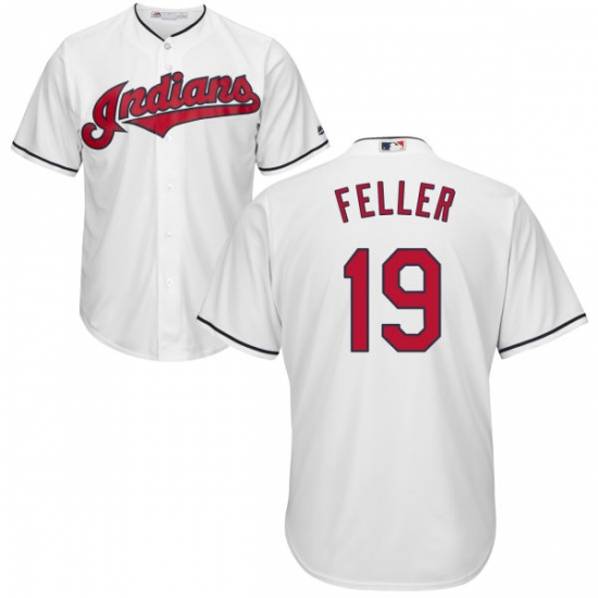 Home>MLB>Cleveland Indians>Bob Feller>Men's Majestic Cleveland Indians #19 Bob Feller Replica White Home Cool Base MLB Jersey