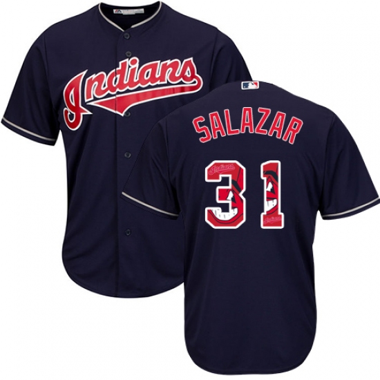 Home>MLB>Cleveland Indians>Danny Salazar>Men's Majestic Cleveland Indians #31 Danny Salazar Authentic Navy Blue Team Logo Fashion Cool Base MLB Jersey
