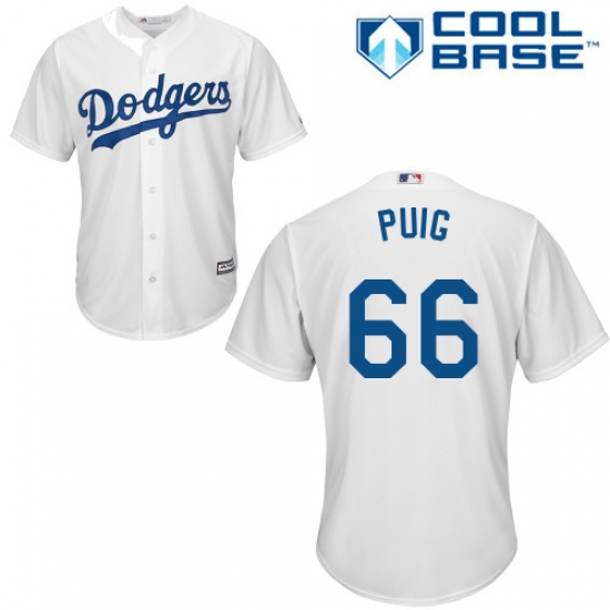 Men's Majestic Los Angeles Dodgers #66 Yasiel Puig Replica White Home Cool Base MLB Jersey
