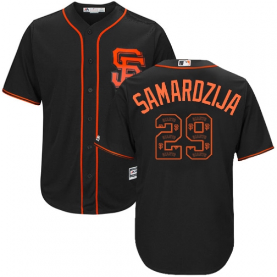 Home>MLB>San Francisco Giants>Jeff Samardzija>Men's Majestic San Francisco Giants #29 Jeff Samardzija Authentic Black Team Logo Fashion Cool Base MLB Jersey