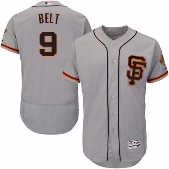Men's Majestic San Francisco Giants #9 Brandon Belt Grey Alternate Flex Base Authentic Collection MLB Jersey