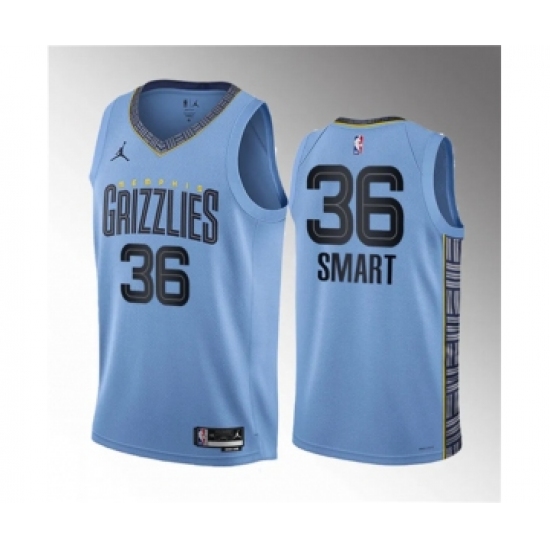 Men's Memphis Grizzlies #36 Marcus Smart Blue 2023 Draft Statement Edition Stitched Basketball Jersey
