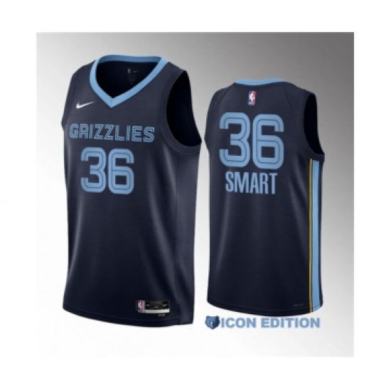 Men's Memphis Grizzlies #36 Marcus Smart Navy 2023 Draft Icon Edition Stitched Basketball Jersey