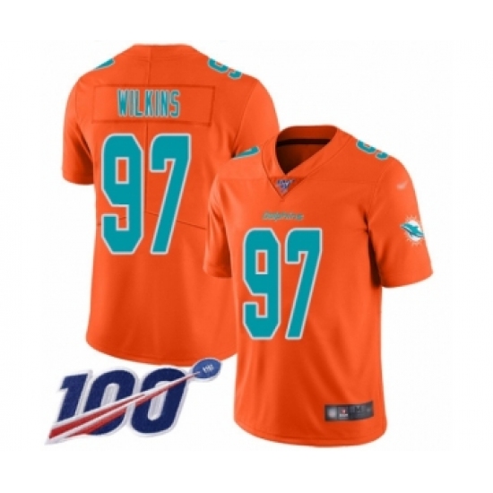 Men's Miami Dolphins #97 Christian Wilkins Limited Orange Rush Vapor Untouchable 100th Season Football Jersey