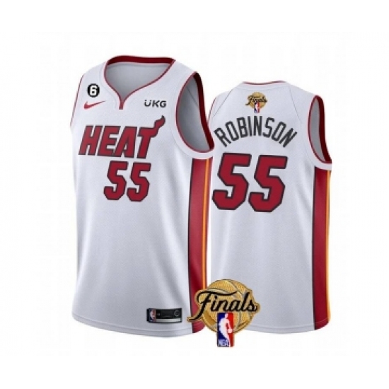 Men's Miami Heat #55 Duncan Robinson White 2023 Finals Association Edition With NO.6 Stitched Basketball Jersey