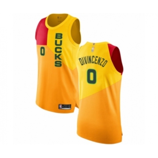 Men's Milwaukee Bucks #0 Donte DiVincenzo Authentic Yellow Basketball Jersey - City Edition