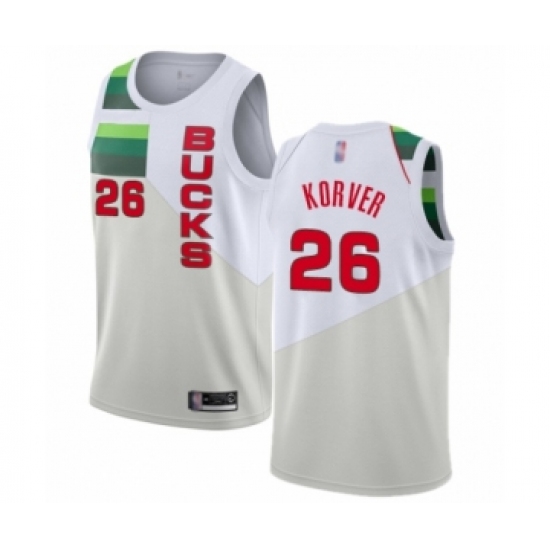 >Men's Milwaukee Bucks #26 Kyle Korver White Swingman Jersey - Earned Edition