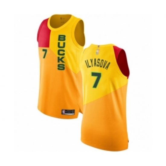 Men's Milwaukee Bucks #7 Ersan Ilyasova Authentic Yellow Basketball Jersey - City Edition