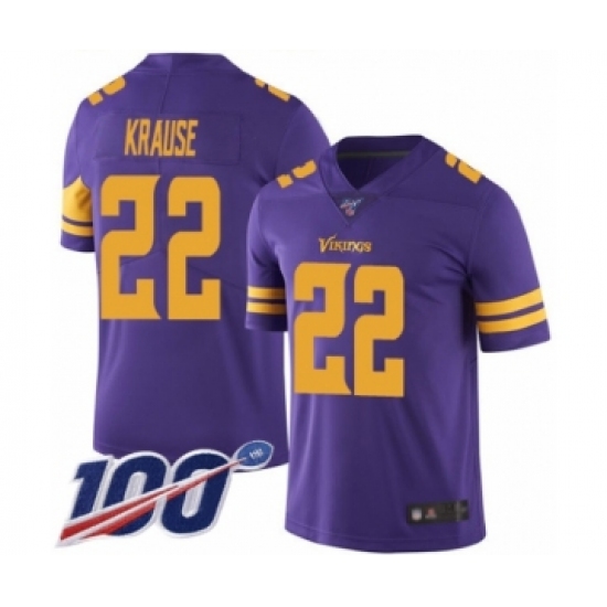>Men's Minnesota Vikings #22 Paul Krause Limited Purple Rush Vapor Untouchable 100th Season Football Jersey
