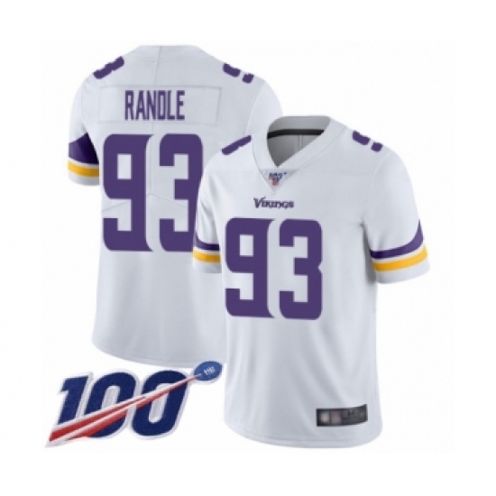 Men's Minnesota Vikings #93 John Randle White Vapor Untouchable Limited Player 100th Season Football Jersey