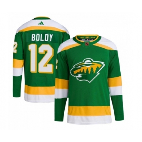 >Men's Minnesota Wild #12 Matt Boldy Green 2022-23 Reverse Retro Stitched Jersey