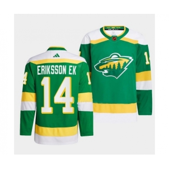 >Men's Minnesota Wild #14 Joel Eriksson Ek Green 2022-23 Reverse Retro Stitched Jersey