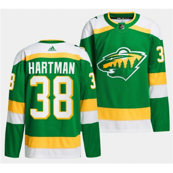 Men's Minnesota Wild #38 Ryan Hartman Green 2022-23 Reverse Retro Stitched Jersey