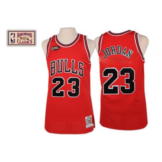 Men's Mitchell and Ness Chicago Bulls #23 Michael Jordan Authentic Red Final Patch Throwback NBA Jersey
