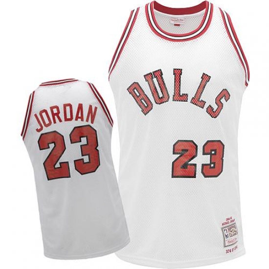 Men's Mitchell and Ness Chicago Bulls #23 Michael Jordan Authentic White Throwback NBA Jersey