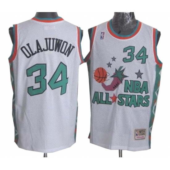 Men's Mitchell and Ness Houston Rockets #34 Hakeem Olajuwon Swingman White 1996 All Star Throwback NBA Jersey