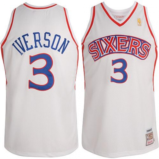 Men's Mitchell and Ness Philadelphia 76ers #3 Allen Iverson Authentic White Throwback NBA Jersey