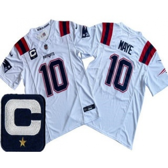 Men's New England Patriots #10 Drake Maye Limited White Captain FUSE Vapor Jersey