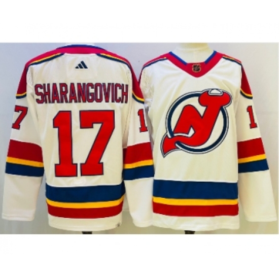 >Men's New Jersey Devils #17 Yegor Sharangovich White 2022 Reverse Retro Authentic Jersey