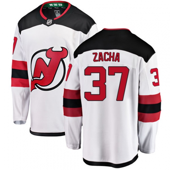 Men's New Jersey Devils #37 Pavel Zacha Fanatics Branded White Away Breakaway NHL Jersey
