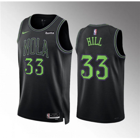 Men's New Orleans Pelicans #33 Malcolm Hill Black City Edition Stitched Basketball Jersey