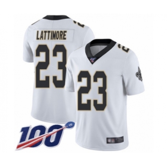 Men's New Orleans Saints #23 Marshon Lattimore White Vapor Untouchable Limited Player 100th Season Football Jersey