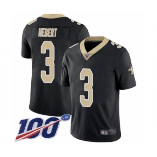 >Men's New Orleans Saints #3 Bobby Hebert Black Team Color Vapor Untouchable Limited Player 100th Season Football Jersey
