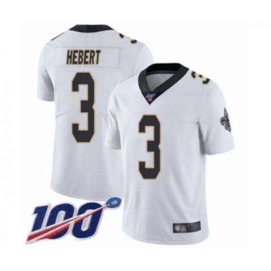 >Men's New Orleans Saints #3 Bobby Hebert White Vapor Untouchable Limited Player 100th Season Football Jersey