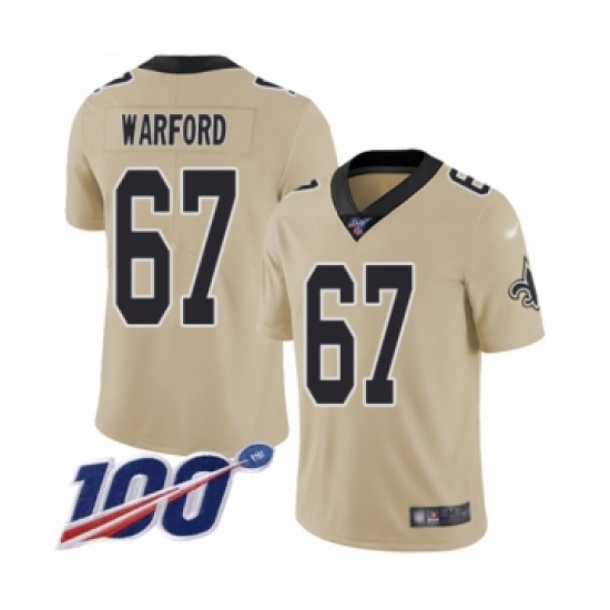 Men's New Orleans Saints #67 Larry Warford Limited Gold Inverted Legend 100th Season Football Jersey