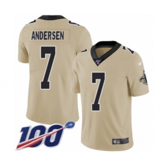 Men's New Orleans Saints #7 Morten Andersen Limited Gold Inverted Legend 100th Season Football Jersey