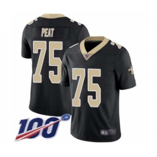 >Men's New Orleans Saints #75 Andrus Peat Black Team Color Vapor Untouchable Limited Player 100th Season Football Jersey