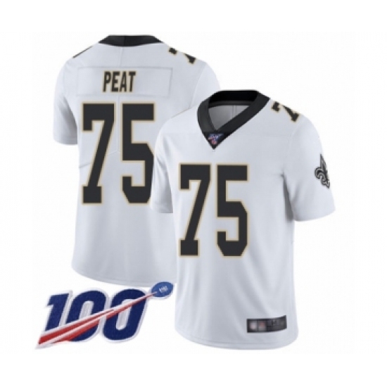 Men's New Orleans Saints #75 Andrus Peat White Vapor Untouchable Limited Player 100th Season Football Jersey