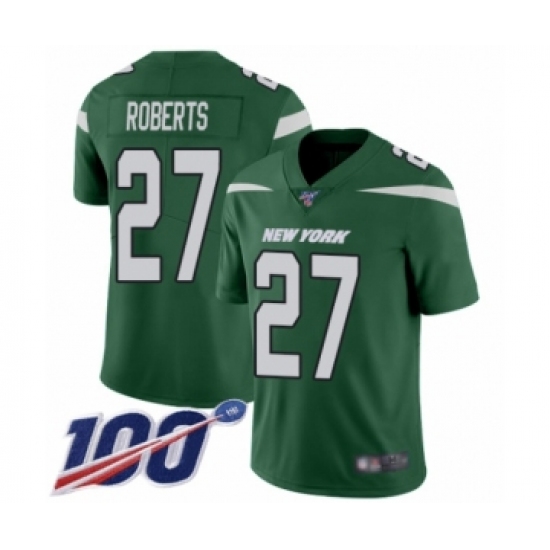 >Men's New York Jets #27 Darryl Roberts Green Team Color Vapor Untouchable Limited Player 100th Season Football Jersey