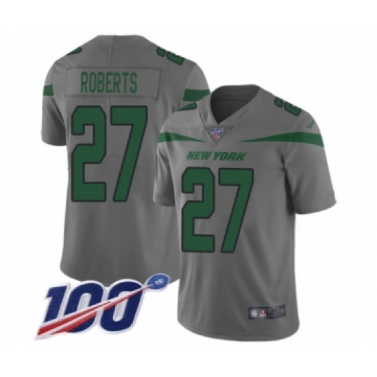 >Men's New York Jets #27 Darryl Roberts Limited Gray Inverted Legend 100th Season Football Jersey