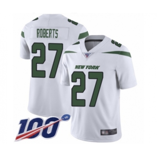 Men's New York Jets #27 Darryl Roberts White Vapor Untouchable Limited Player 100th Season Football Jersey