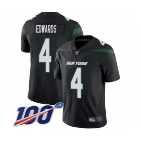 >Men's New York Jets #4 Lac Edwards Black Alternate Vapor Untouchable Limited Player 100th Season Football Jersey