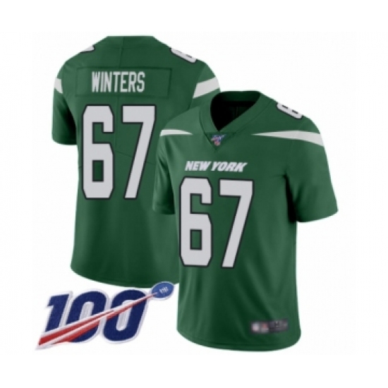 >Men's New York Jets #67 Brian Winters Green Team Color Vapor Untouchable Limited Player 100th Season Football Jersey