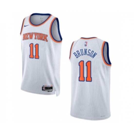 Men's New York Knicks #11 Jalen Brunson White Stitched Basketball Jersey