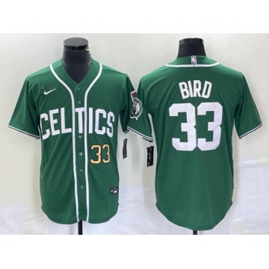 >Men's Nike Boston Celtics #33 Larry Bird Number Green Stitched Baseball Jersey