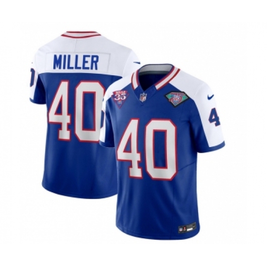 Men's Nike Buffalo Bills #40 Von Miller Blue White 2023 F.U.S.E. 75th Anniversary Throwback Vapor Untouchable Limited Football Stitched Jersey