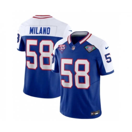 Men's Nike Buffalo Bills #58 Matt Milano Blue White 2023 F.U.S.E. 75th Anniversary Throwback Vapor Untouchable Limited Football Stitched Jersey