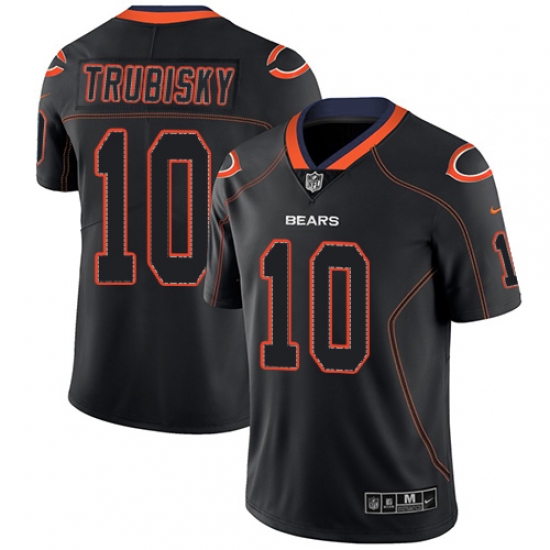 >Men's Nike Chicago Bears #10 Mitchell Trubisky Limited Lights Out Black Rush NFL Jersey