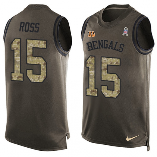 Home>NFL>Cincinnati Bengals>John Ross>Men's Nike Cincinnati Bengals #15 John Ross Limited Green Salute to Service Tank Top NFL Jersey