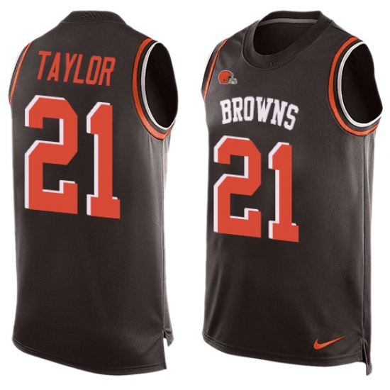 Home>NFL>Cleveland Browns>Jamar Taylor>Men's Nike Cleveland Browns #21 Jamar Taylor Limited Brown Player Name & Number Tank Top NFL Jersey
